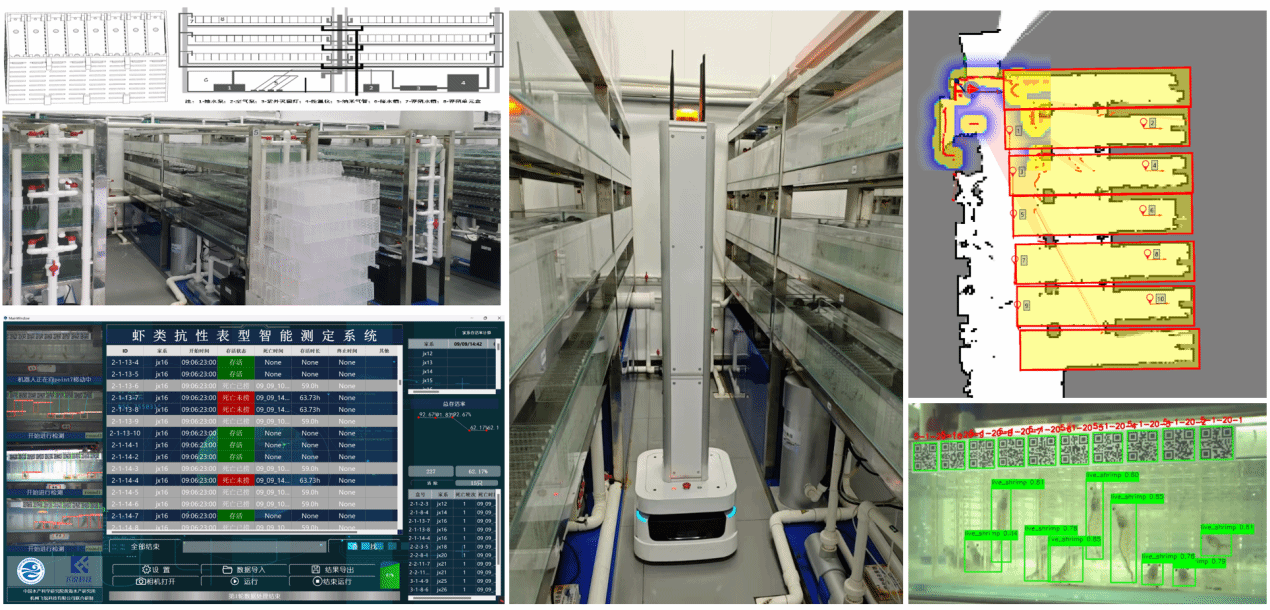 对虾的抗病性状属于一种较难测量的性状,传统方法耗费大量人力,需要24小时不间断地观察、记录上千尾对虾感染后的状态,并且人工统计和记录引入的误差非常普遍。获取抗性表型数据库效率低、不准确是制约抗性育种的一个重要因素。针对上述问题,黄海所在原有的抗性测试系统的基础上,开发了一套智能化、自动化的测定系统。通过机器人自动行走、工业摄像头采集图像数据、二维码标记识别个体、机器学习模型判断存活状态等多个技术模块的开发和组合,实现对感染个体存活时间的精准判定和记录,有效解决了抗性测试费人费力且准确度低等问题,同时检测速度达到了高通量水平,可以一次进行更多个体的测试,进一步增加了抗病性状获取的一致性和可比性。