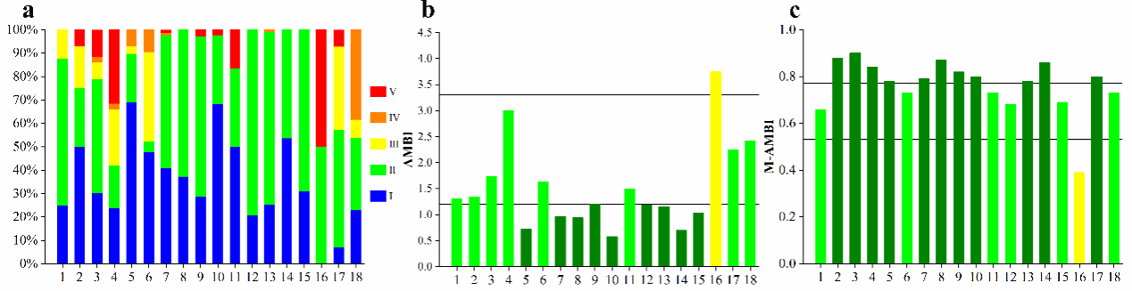 (b)大型底栖动物AMBI值