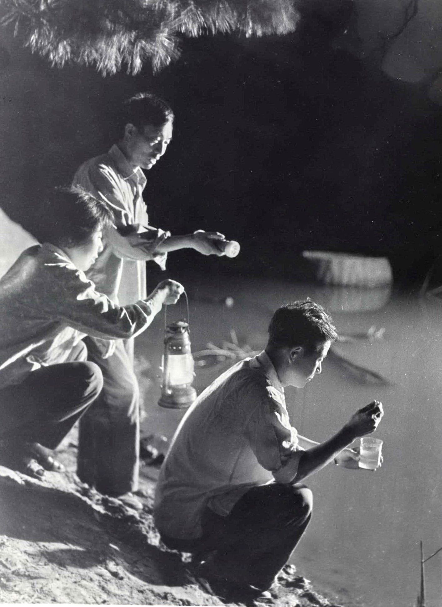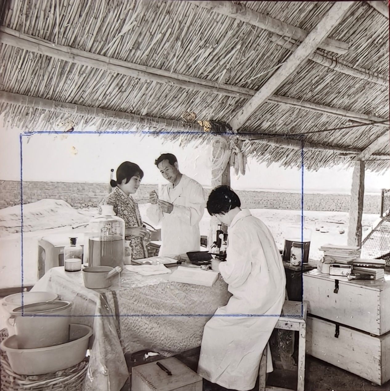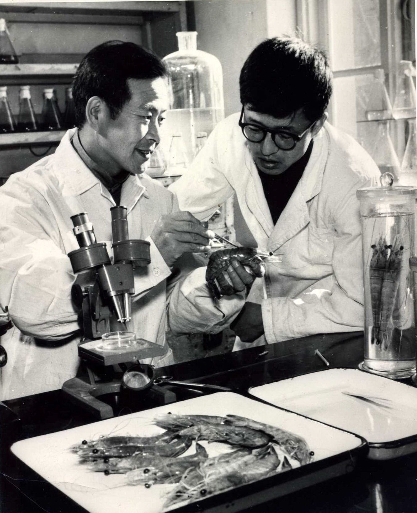 1960年赵院士和同事一起捞取并观察虾池水中的浮游生物
