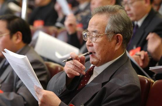 030306十届人大一次会议第二次全体会议赵法箴委员认真听会